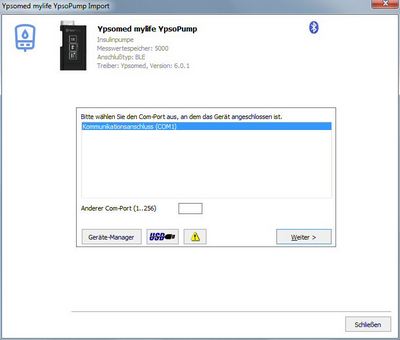 Der SiDiary-Importtreiber übernimmt nahezu alle verfügbaren Historie-Daten. Sie brauchen dazu nur eine Bluetooth Verbindung, wie es im Handbuch der Pumpe beschrieben ist