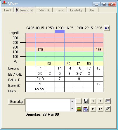 Unser Credo ist, daß es sich letztendlich nur um Daten handelt, und warum soll man die in eine fest vorgegebene Form zwängen? Der Vorteil von SiDiary ist, dass alle an der Entwicklung Beteiligten selbst langjährige Diabetiker und/oder Diabetesprofis sind. Im Forum kann sich jeder ein Bild davon machen und ist herzlich eingeladen, auch seine Wünsche und Ideen einzubringen. Damit unser Slogan mehr bleibt als nur ein Werbespruch: